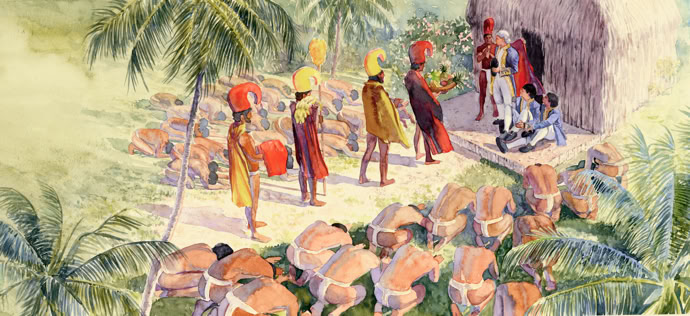 Captain James Cook welcomed by the Hawaiians